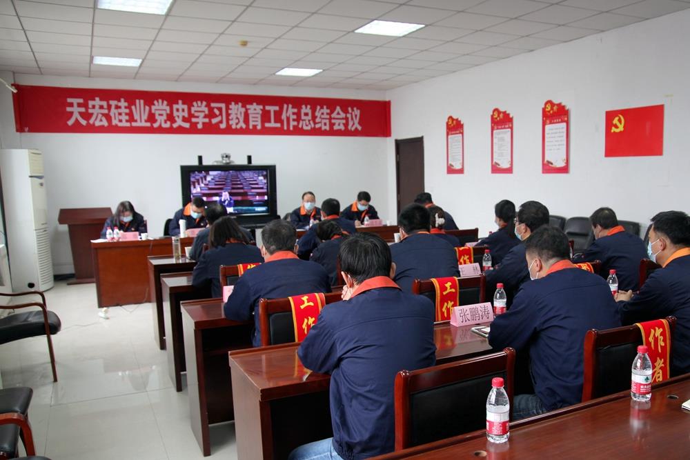 為進(jìn)一步激勵(lì)廣大干部職工從黨的百年偉大奮斗歷程中汲取智慧力量,天宏硅業(yè)黨委組織召開了黨史學(xué)習(xí)教育總結(jié)會(huì)議,傳達(dá)學(xué)習(xí)集團(tuán)公司黨史學(xué)習(xí)教育總結(jié)會(huì)議精神,全面總結(jié)公司黨史學(xué)習(xí)教育成效經(jīng)驗(yàn)。公司黨委副書記、總經(jīng)理蘇旭盛主持會(huì)議并講話,公司領(lǐng)導(dǎo)班子成員、副總工程師、中層干部、各黨支部組織委員、紀(jì)檢委員以及公司2021年度先進(jìn)工作者參加了會(huì)議。