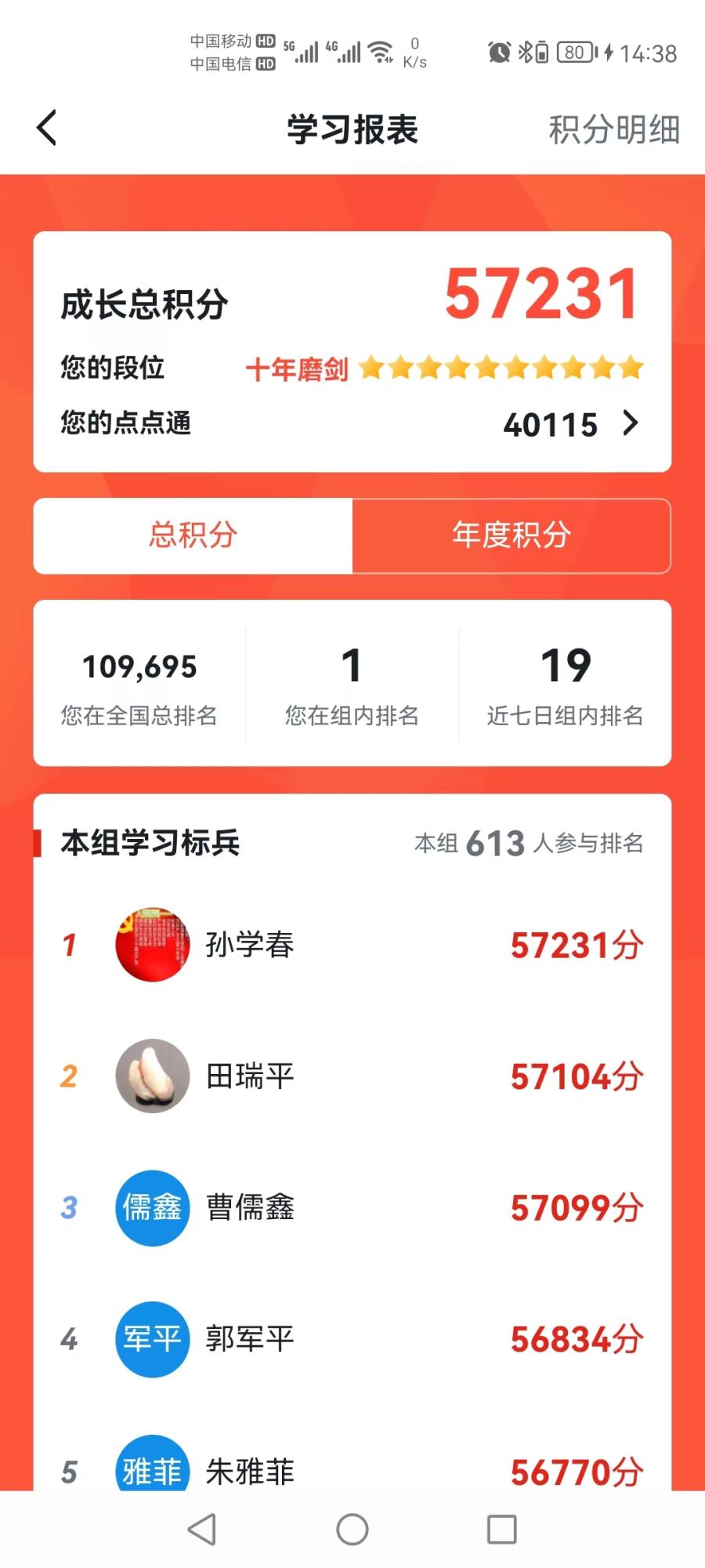 目前,全公司共有注冊學(xué)員613人,學(xué)員參與度、活躍度均在陜西有色金屬集團(tuán)各單位長期處于領(lǐng)先位次,日均積分經(jīng)常位居第一名。截止4月27日,鋁業(yè)分公司孫學(xué)春以總積分57289分,排名全國第108949名,2022年度積分5848分,排名全國第1188名,全公司學(xué)習(xí)強(qiáng)國學(xué)員總積分55000分以上達(dá)136人,黨委宣傳部田瑞平和陽極分公司曹儒鑫挑戰(zhàn)答題先后以2288和2323題順利通關(guān)。