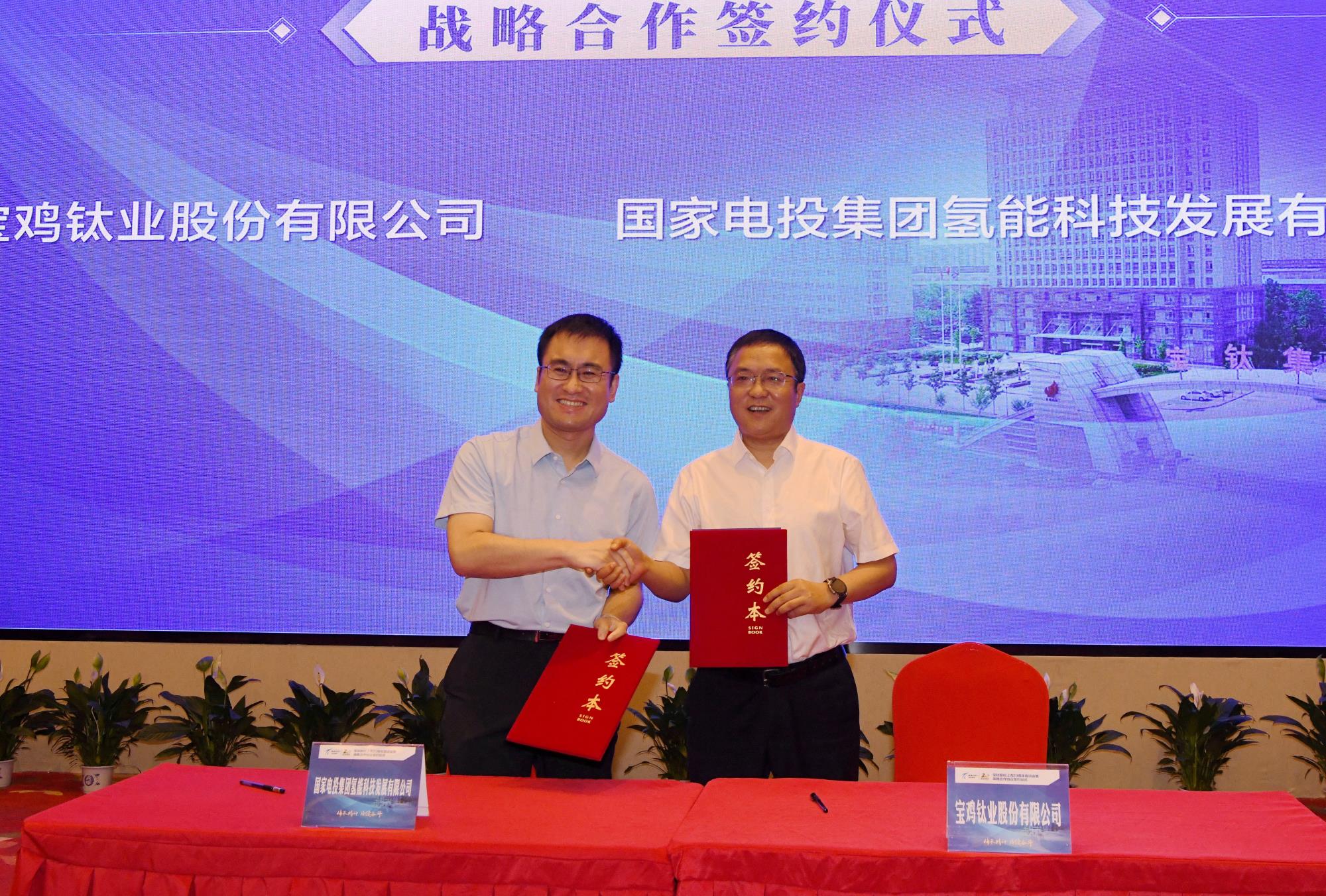 會(huì)上,與會(huì)人員集體觀看了寶鈦股份上市20周年宣傳片。中國(guó)航發(fā)動(dòng)力股份有限公司副總經(jīng)理沈鵬與寶鈦股份副總經(jīng)理何書(shū)林,國(guó)家電投集團(tuán)氫能科技發(fā)展有限公司寧波綠動(dòng)燃料電池有限公司總經(jīng)理李鵬飛與寶鈦股份副總經(jīng)理容耀分別上臺(tái),簽訂了戰(zhàn)略合作協(xié)議。由于疫情原因,法國(guó)賽峰集團(tuán)總部提前與寶鈦股份進(jìn)行了視頻簽約,并安排賽峰集團(tuán)亞洲區(qū)供應(yīng)鏈經(jīng)理周壽波與寶鈦股份外貿(mào)部主任張杰現(xiàn)場(chǎng)交換了簽訂的協(xié)議。