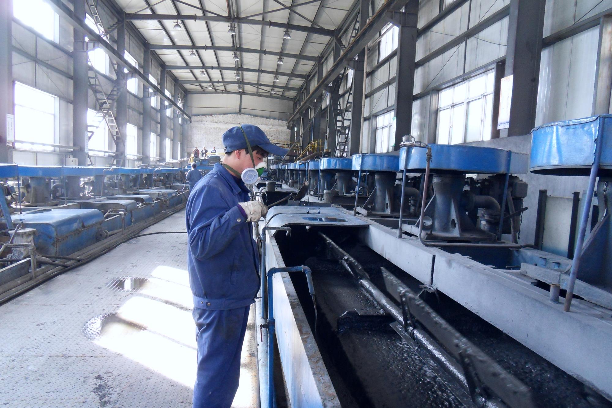 圖2:二里河礦業(yè)公司浮選車(chē)間操作工在觀察浮選泡沫變化情況