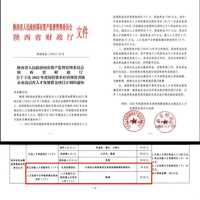 近日,陜西省國資委、陜西省財政廳公布了2022年度省級企業(yè)高層次人才發(fā)展資金項目計劃,地礦集團物化探總隊公司“中國西北特殊景觀深部資源探測創(chuàng)新團隊”獲得陜西省突出貢獻人才獎勵項目,獲資助金額50萬元。