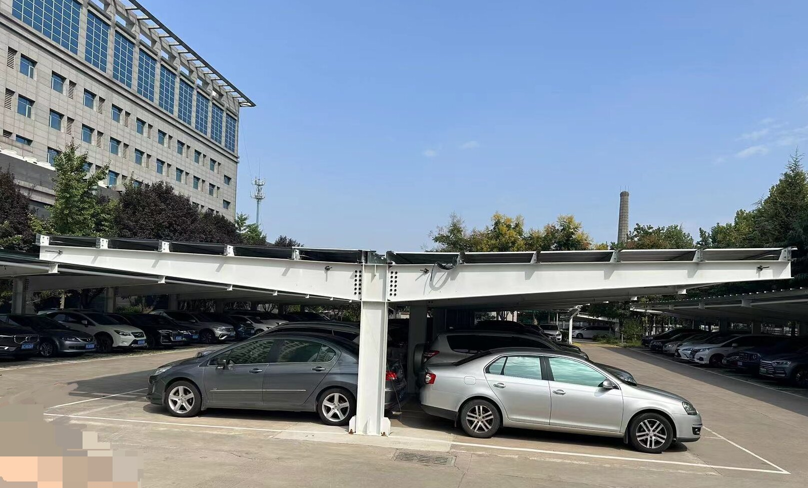 來到寶鈦工業(yè)園辦公大樓,新建成的1035平方光伏車棚屋頂上深藍(lán)色的BIPV太陽能光伏板整齊排列,陽光的照射正被轉(zhuǎn)化為一度度的綠色電能。9月20日,光電科技新能源公司承建的寶鈦工業(yè)園194.56千瓦光伏車棚成功并網(wǎng)發(fā)電,這是新能源公司繼寶鈦工業(yè)園20MW屋頂光伏電站之后亮出的第二張“綠色名片”,更是助力寶鈦“零碳工業(yè)園”目標(biāo)實(shí)現(xiàn)的又一創(chuàng)新實(shí)踐。