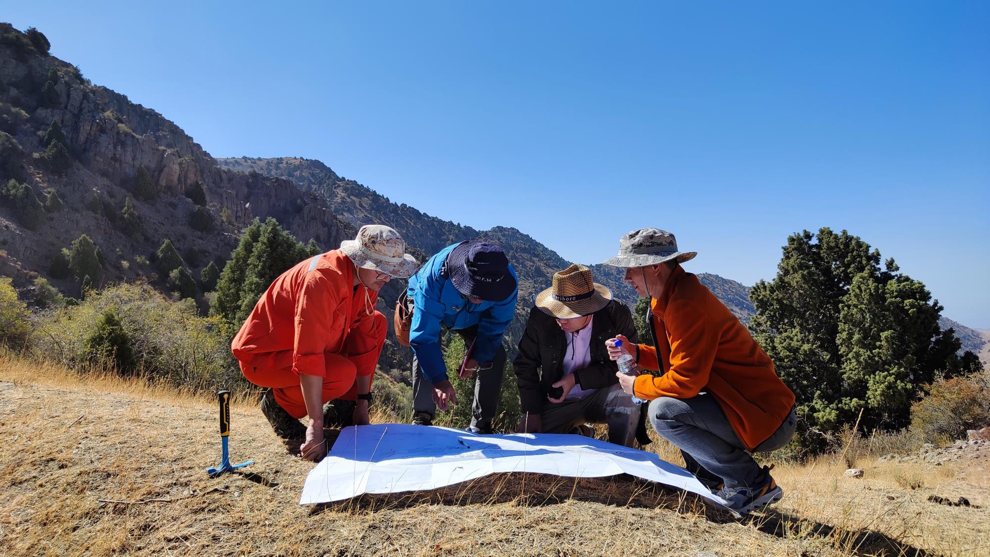 物探隊(duì)地質(zhì)人員和外部地質(zhì)專家在塔吉克斯坦項(xiàng)目進(jìn)行野外調(diào)研