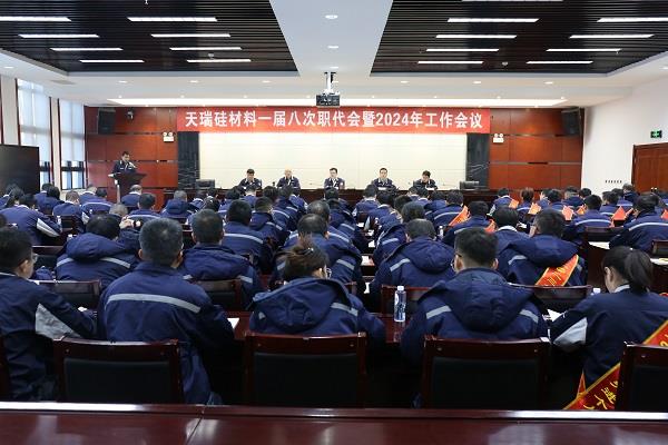 1月20日,天瑞硅材料召開一屆八次職代會暨2024年工作會議,公司黨委書記、董事長蘇旭盛出席并講話,黨委副書記、總經(jīng)理徐巖作工作報告,公司領(lǐng)導(dǎo)班子成員、職工代表、年度先進(jìn)個人及先進(jìn)集體代表110余人帶著職工的心聲和熱情齊聚一堂,行使民主權(quán)利,共同為公司高質(zhì)量集思廣益,為改革發(fā)展建言獻(xiàn)策,共同描繪發(fā)展藍(lán)圖。會議由公司黨委委員、副總經(jīng)理趙渭濱主持。