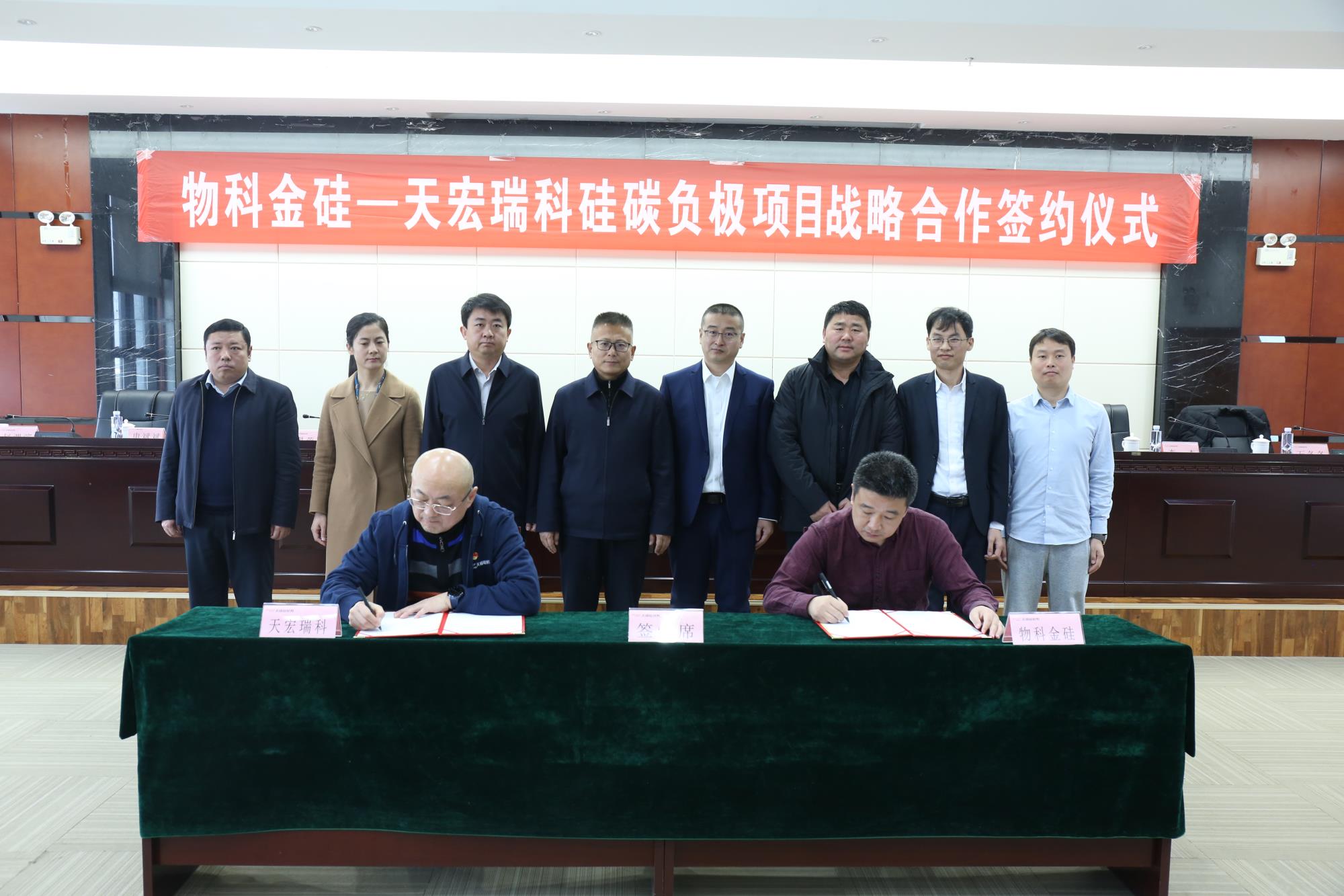 2024年1月30日,陜西有色天宏瑞科硅材料有限責任公司(以下簡稱天瑞硅材料)與四川物科金硅新材料科技有限責任公司(以下簡稱物科金硅)就硅碳負極項目戰(zhàn)略合作舉行了簽約儀式。佳縣縣委書記姬躍飛,天瑞硅材料黨委副書記、總經理徐巖,佳縣人民政府及榆佳經開區(qū)管委會相關領導出席見證。
