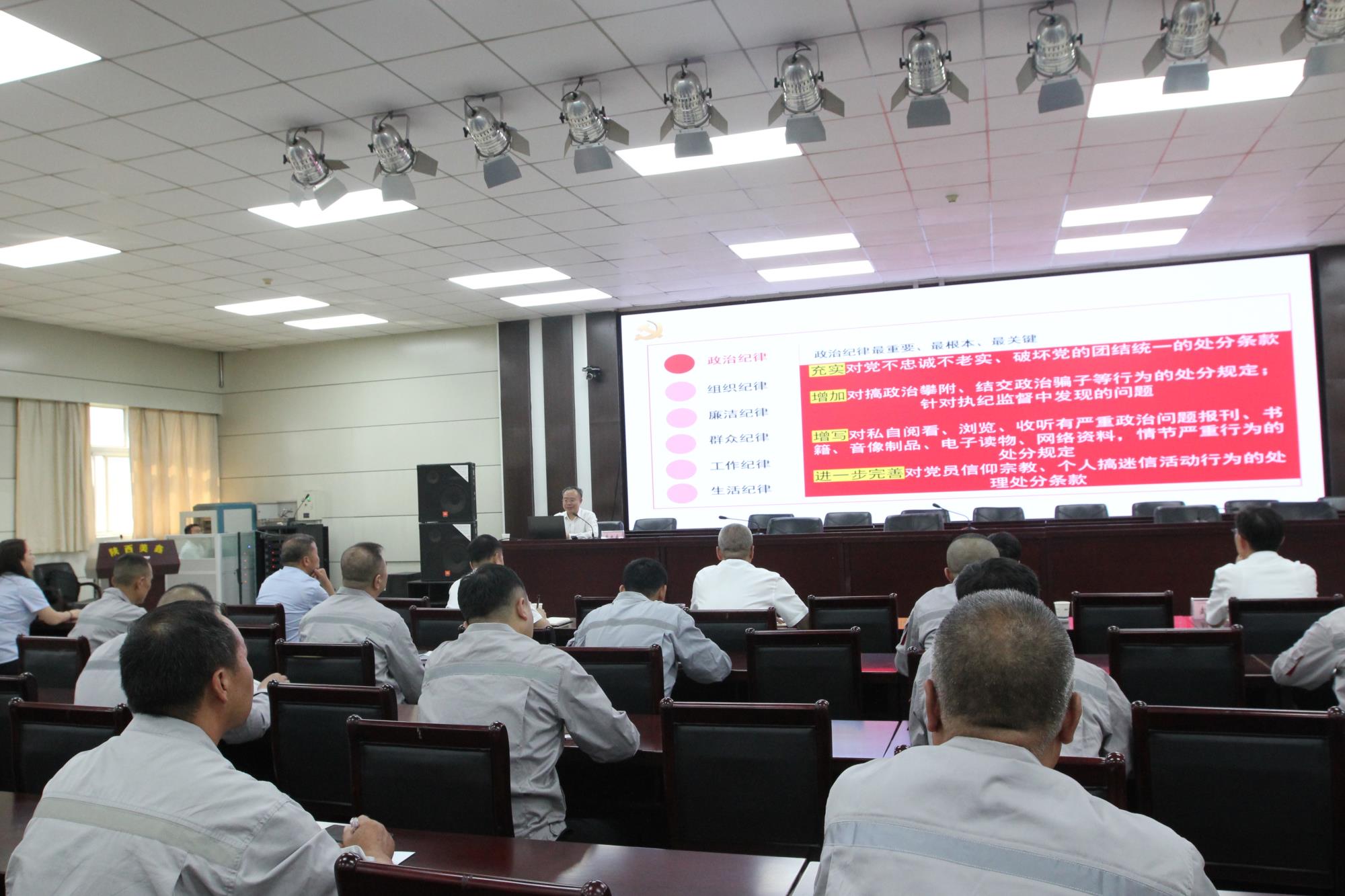 隨后,黃忠良從“深刻理解開展黨紀(jì)學(xué)習(xí)教育的重大意義”“解讀《中國共產(chǎn)黨紀(jì)律處分條例》重點(diǎn)內(nèi)容”“《條例》與我們?nèi)粘9ぷ骱蜕罹o密相聯(lián)的內(nèi)容”“抓好《中國共產(chǎn)黨紀(jì)律處分條例》的貫徹執(zhí)行”“讓遵規(guī)守紀(jì)成為行動(dòng)自覺”五個(gè)方面為陜西美鑫公司黨員干部講授了黨紀(jì)學(xué)習(xí)教育專題黨課。黃忠良強(qiáng)調(diào),陜西美鑫公司黨員干部要準(zhǔn)確把握黨紀(jì)學(xué)習(xí)教育的目標(biāo)要求,持續(xù)在學(xué)紀(jì)、知紀(jì)、明紀(jì)、守紀(jì)上下功夫,以忠誠干凈擔(dān)當(dāng)?shù)膶?shí)際行動(dòng)為陜西有色金屬集團(tuán)奮進(jìn)“千百十一”高質(zhì)量發(fā)展總目標(biāo)、建立現(xiàn)代產(chǎn)業(yè)體系、打造有色金屬高新材料新名片、建設(shè)世界一流企業(yè)提供堅(jiān)強(qiáng)保障。