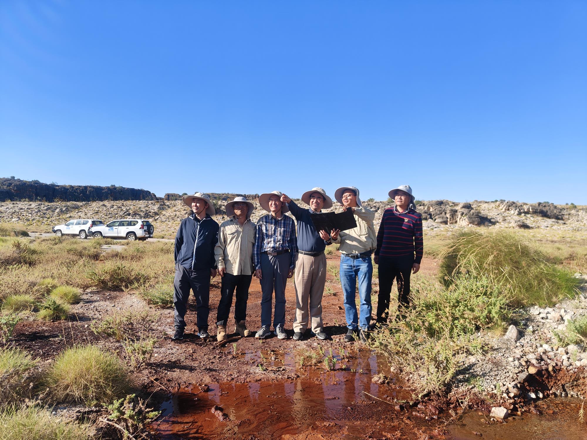 隨后,代表團(tuán)一行前往位于西澳北部坎寧盆地北緣的子午線礦業(yè)公司雷納德·謝爾夫鉛鋅礦,開展實(shí)地踏勘和檢查調(diào)研,進(jìn)一步了解項(xiàng)目進(jìn)展。該項(xiàng)目擁有各類礦權(quán)區(qū)27塊,面積約275.25平方千米,是世界重要的密西西比河谷型鉛鋅礦產(chǎn)地之一。截至2023年底,整個(gè)礦帶已投入鉆探124萬米。為進(jìn)一步提升海外資產(chǎn)價(jià)值,實(shí)現(xiàn)新礦種資源的找礦突破,今年地質(zhì)技術(shù)人員在Kutarta-Palijippa和Goongewa East兩個(gè)勘查區(qū)重點(diǎn)開展稀土金屬勘查工作,通過地表路線調(diào)查、三維模型分析及歷史資料研究,對(duì)鉛鋅和稀土成礦模式進(jìn)行了歸納總結(jié),系統(tǒng)梳理了項(xiàng)目礦權(quán)范圍內(nèi)的鉛鋅和稀土找礦潛力,確定可供進(jìn)一步勘查的鉛鋅靶區(qū)2個(gè)。