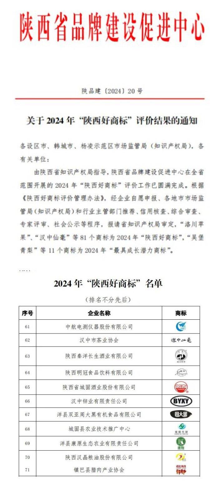 據(jù)悉,2024年“陜西好商標”評選由陜西省知識產(chǎn)權(quán)局指導,通過企業(yè)申報、各地市場監(jiān)管部門推薦、信用核查、綜合評審和社會公示等嚴格程序,最終,包括“BYXY”“漢中仙毫”等81個商標榮獲“陜西好商標”稱號。