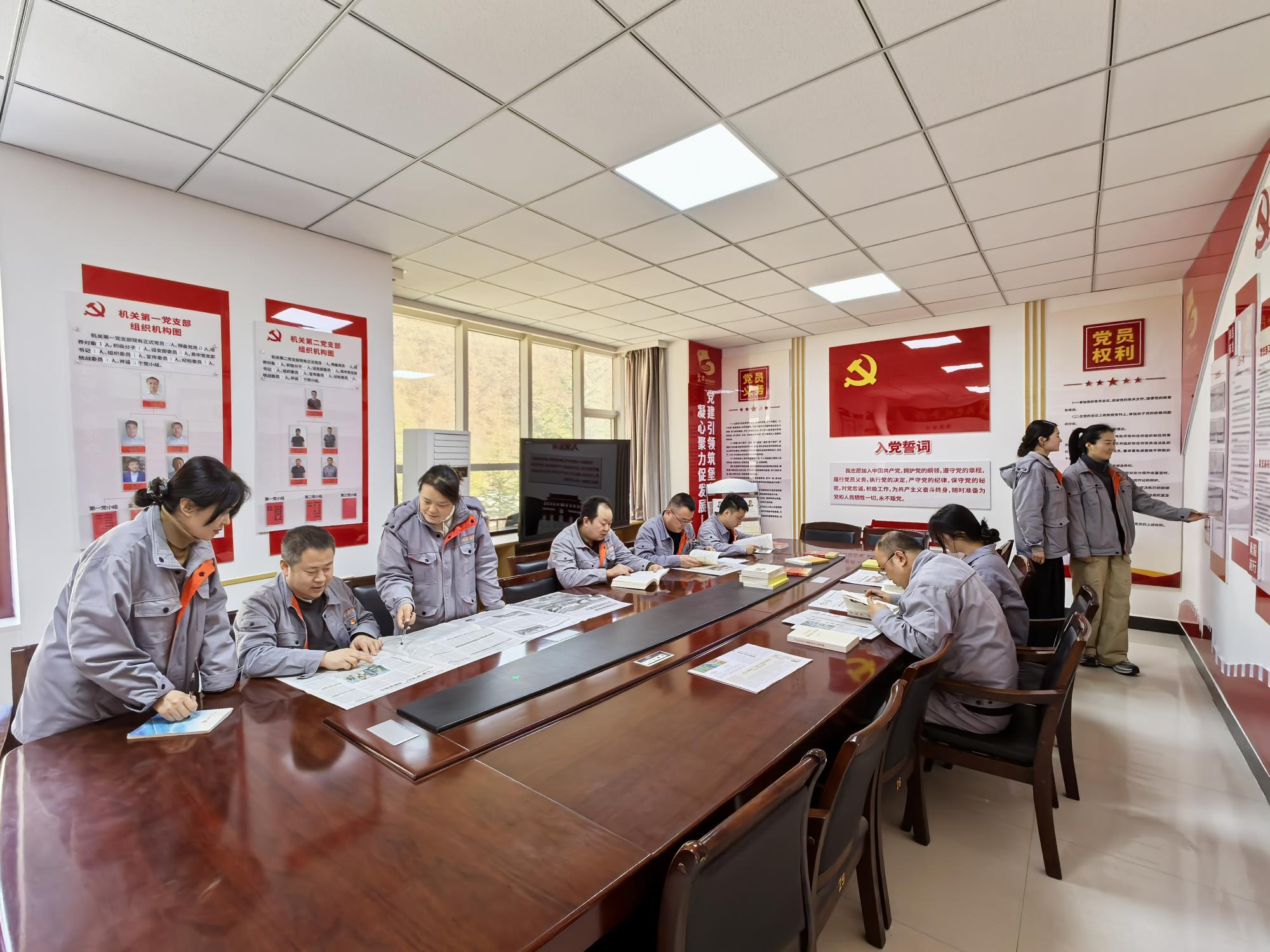黃金集團(tuán)四方金礦職工在黨員活動(dòng)室學(xué)習(xí)交流