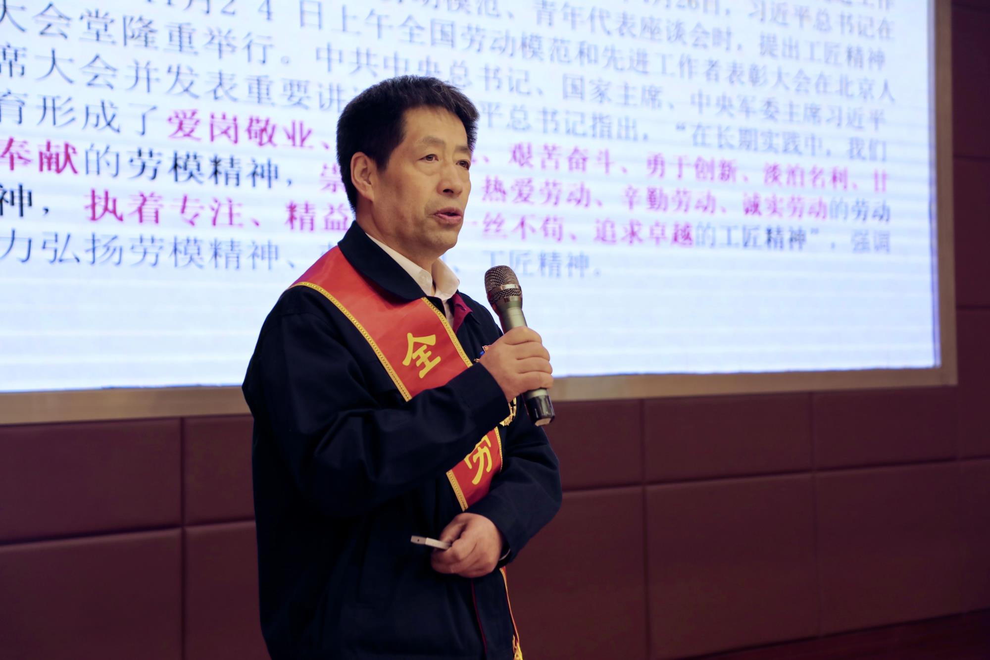 思政課現(xiàn)場,全國勞動模范、全國人大代表、三秦工匠獲得者郭文生以“匠心筑夢”為主題,結(jié)合個人成長經(jīng)歷,深入解讀了勞模精神、勞動精神、工匠精神,強調(diào)“勞模精神是永不褪色的時代底色”。他勉勵新職工:“平凡崗位因奮斗而閃光,青春理想因?qū)嵏啥x煌!”隨后,新職工代表、煤業(yè)公司液壓檢修工劉博韜,合金分公司職工王佳儀分享了個人的入職感悟。劉博韜表示:“從‘數(shù)字藍?!饺f米井下,變的是技術,不變的是工匠精神的傳承?!蓖跫褍x則用“釘釘子精神”詮釋了對崗位的熱愛。