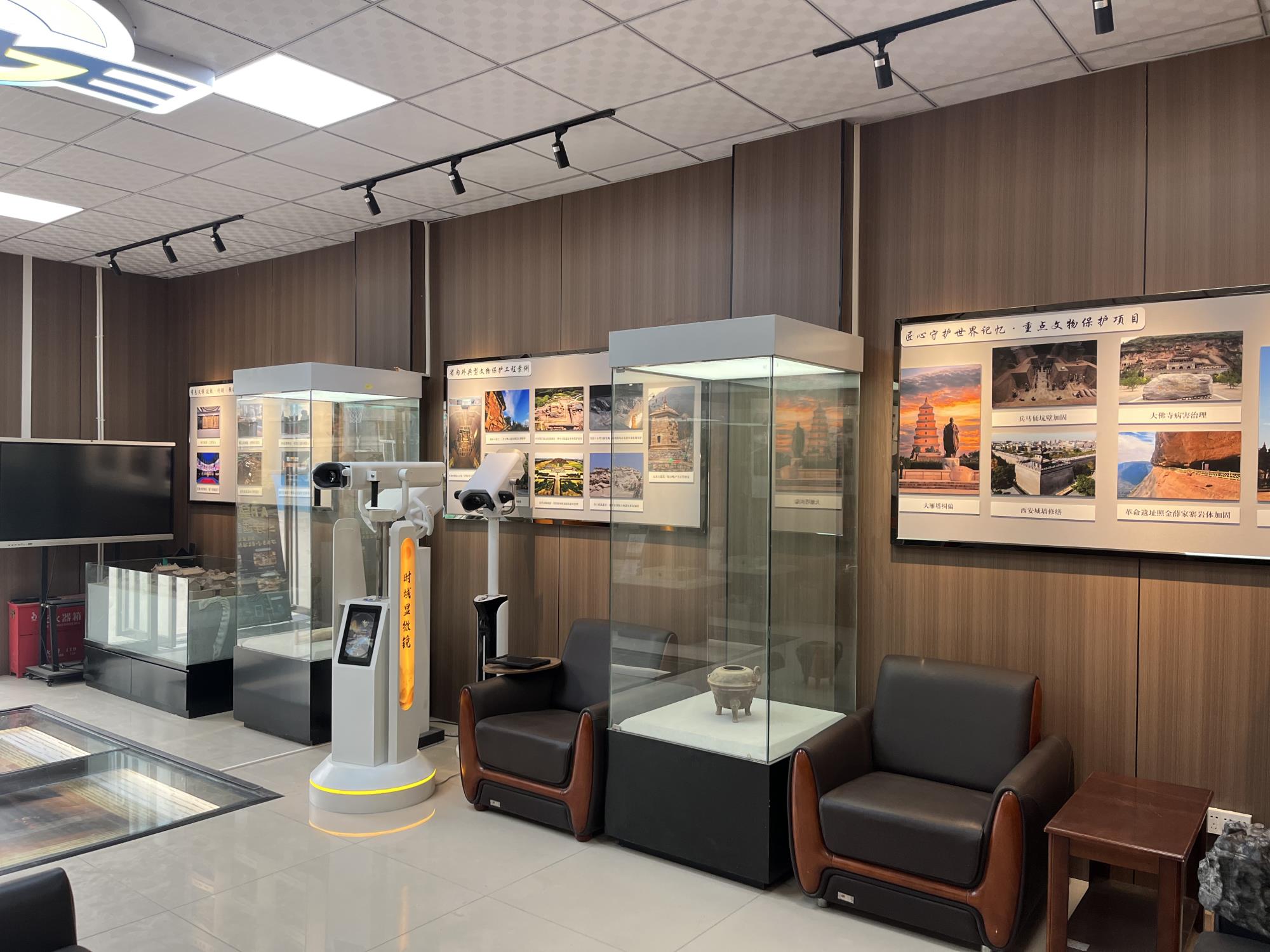 展廳占地約50平方米,5塊精心設(shè)計(jì)的展板與7個(gè)獨(dú)具匠心的展柜錯(cuò)落有致,近10件文創(chuàng)產(chǎn)品風(fēng)格各異,全方位呈現(xiàn)了公司在傳統(tǒng)巖土文物保護(hù)、文物遷移、文物展陳利用、文物保護(hù)數(shù)字化等多個(gè)領(lǐng)域的豐碩成果與創(chuàng)新實(shí)踐,串聯(lián)起公司文保產(chǎn)業(yè)的全鏈條發(fā)展脈絡(luò)。展廳還利用3D掃描、虛擬現(xiàn)實(shí)(VR)、增強(qiáng)現(xiàn)實(shí)(AR)以及高清投影等數(shù)字化設(shè)備等,為展陳提供了有力技術(shù)加持。借助現(xiàn)場(chǎng)操作演示,原本靜置于展廳的壁畫、模型被賦予新“生命”,在虛實(shí)交織中煥發(fā)新的活力。