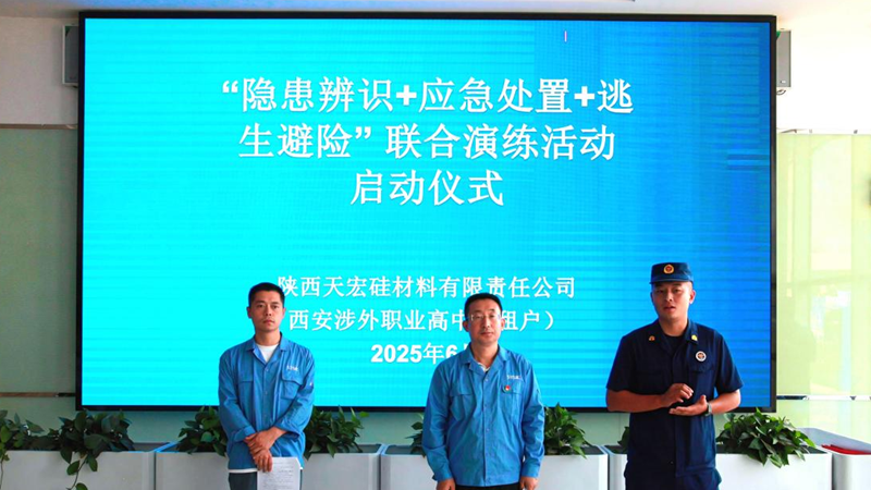 為深入學(xué)習(xí)貫徹習(xí)近平總書記關(guān)于安全生產(chǎn)的重要論述和重要指示批示精神,全面落實(shí)國(guó)務(wù)院、省安委辦及集團(tuán)公司 2025年“安全生產(chǎn)月”活動(dòng)相關(guān)要求,持續(xù)提升全員消防安全意識(shí)和應(yīng)急處置實(shí)戰(zhàn)能力,6月26日上午,陜西天宏硅材料有限責(zé)任公司攜手秦漢新城消防支隊(duì)、西安涉外職業(yè)高中,于天宏硅業(yè)研發(fā)大廈成功舉辦了以“隱患辨識(shí)+應(yīng)急處置+逃生避險(xiǎn)”為主題的綜合演練活動(dòng)。公司黨委書記、董事長(zhǎng)劉建中全程指揮并作動(dòng)員講話。