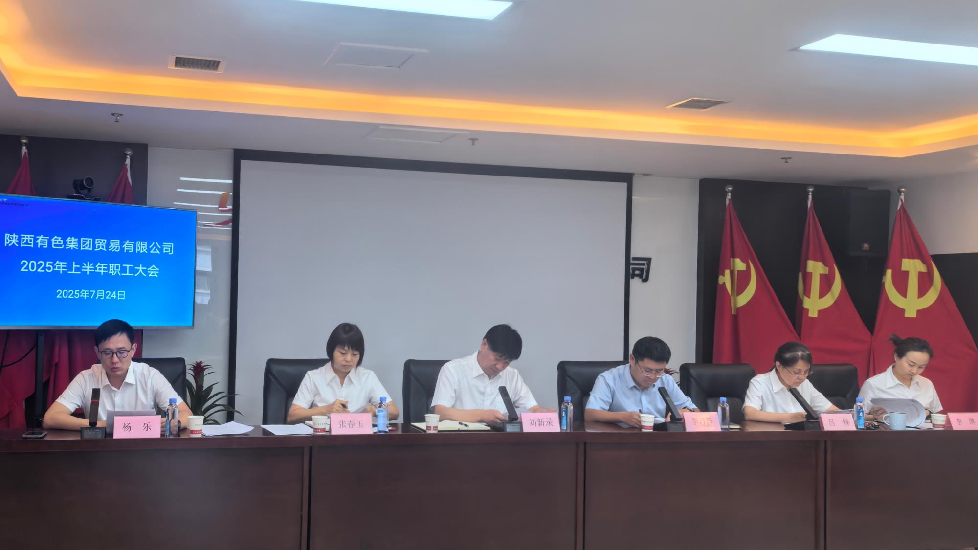 7月24日,陜西有色貿(mào)易公司召開(kāi)2025年上半年職工大會(huì)。黨委書(shū)記、董事長(zhǎng)劉新錄出席會(huì)議并講話,黨委副書(shū)記、總經(jīng)理李乃新作工作報(bào)告,黨委委員、總會(huì)計(jì)師、副總經(jīng)理張春玉作財(cái)務(wù)工作分析,黨委委員、紀(jì)委書(shū)記呂鋅作黨建工作報(bào)告,黨委委員、副總經(jīng)理?xiàng)顦?lè)主持會(huì)議。