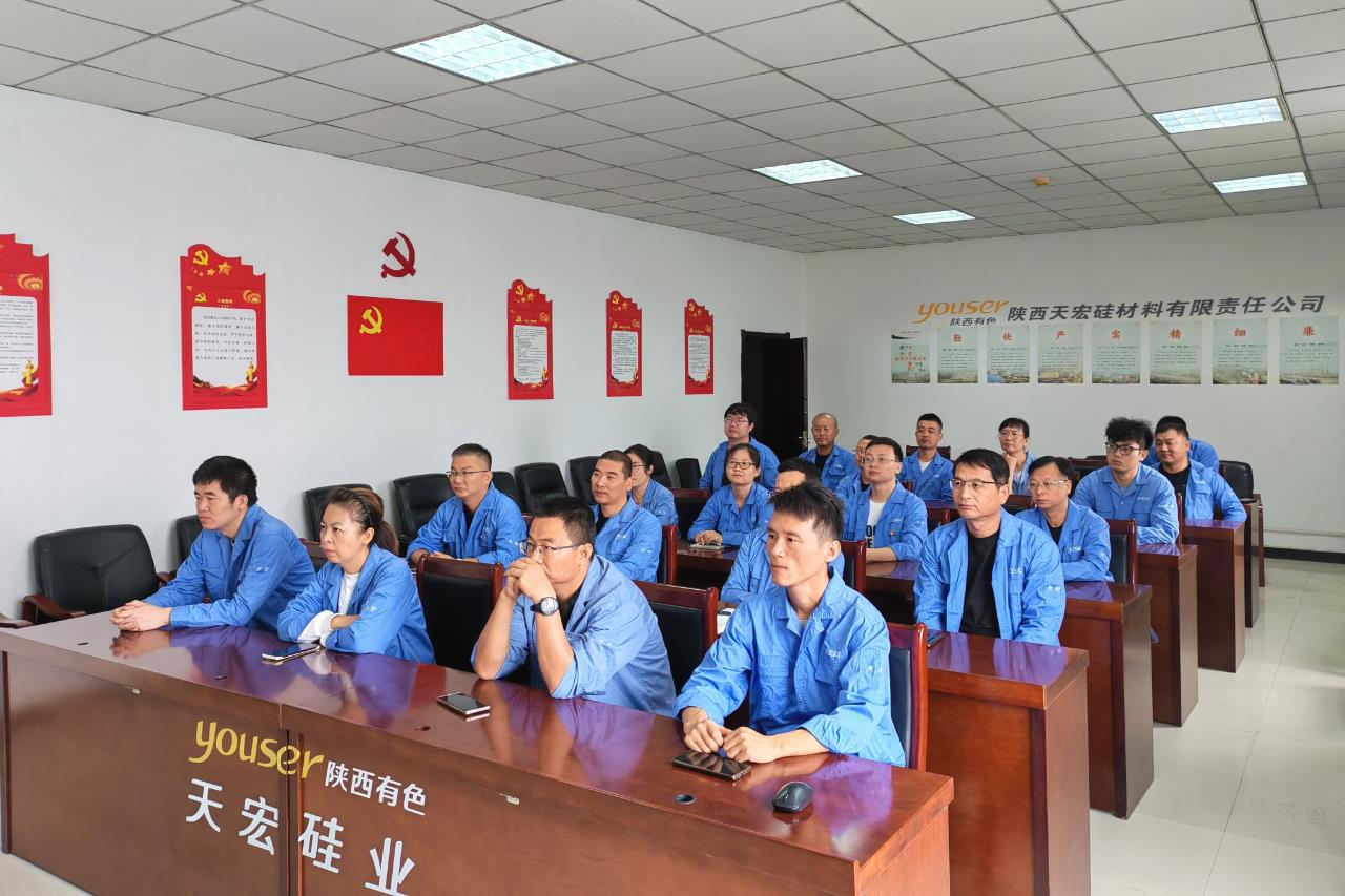 2025年9月3日上午,天宏硅業(yè)組織在崗人員集中收看紀念大會實況直播第二會場