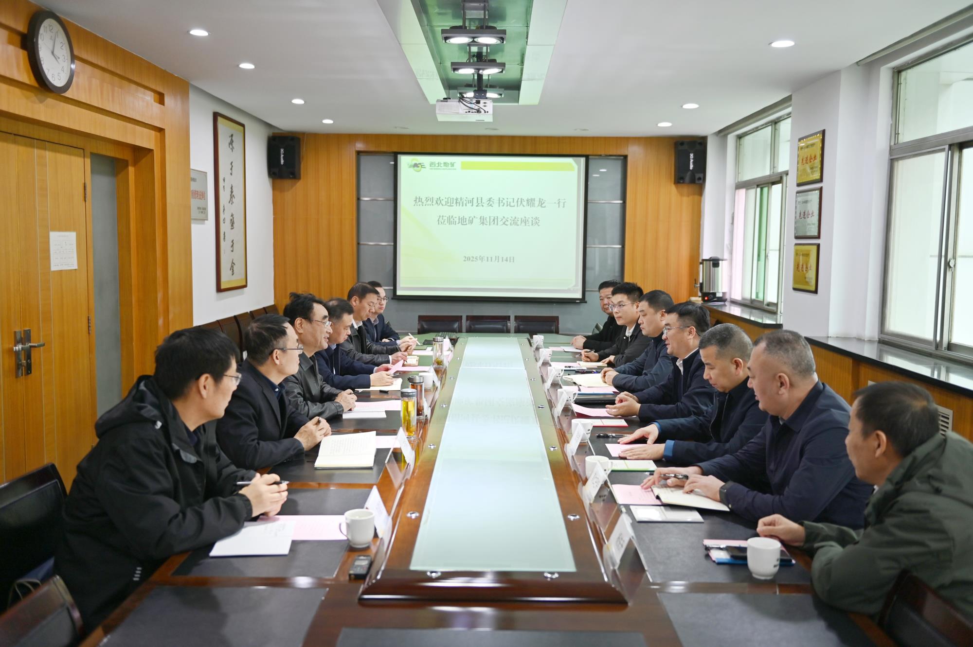 秦西社簡(jiǎn)要介紹了地礦集團(tuán)歷史沿革、產(chǎn)業(yè)布局、礦產(chǎn)資源勘查收儲(chǔ)及主動(dòng)融入高質(zhì)量共建“一帶一路”等方面的成果與經(jīng)驗(yàn)。結(jié)合前期項(xiàng)目實(shí)施成果,他強(qiáng)調(diào),精河縣資源勘查項(xiàng)目是地礦集團(tuán)落實(shí)陜西有色金屬集團(tuán)資源倍增計(jì)劃的重點(diǎn)項(xiàng)目,是地礦集團(tuán)在疆戰(zhàn)略投資規(guī)劃的首個(gè)落地項(xiàng)目,對(duì)國(guó)家戰(zhàn)略性礦產(chǎn)資源保障具有重要意義。地礦集團(tuán)將深化與精河縣的溝通協(xié)作,堅(jiān)守“安全第一、綠色勘查”理念,以技術(shù)創(chuàng)新提升勘探開(kāi)發(fā)效率,全力以赴做好技術(shù)支撐服務(wù),奮力打造天山北麓“西北有色”金字招牌。