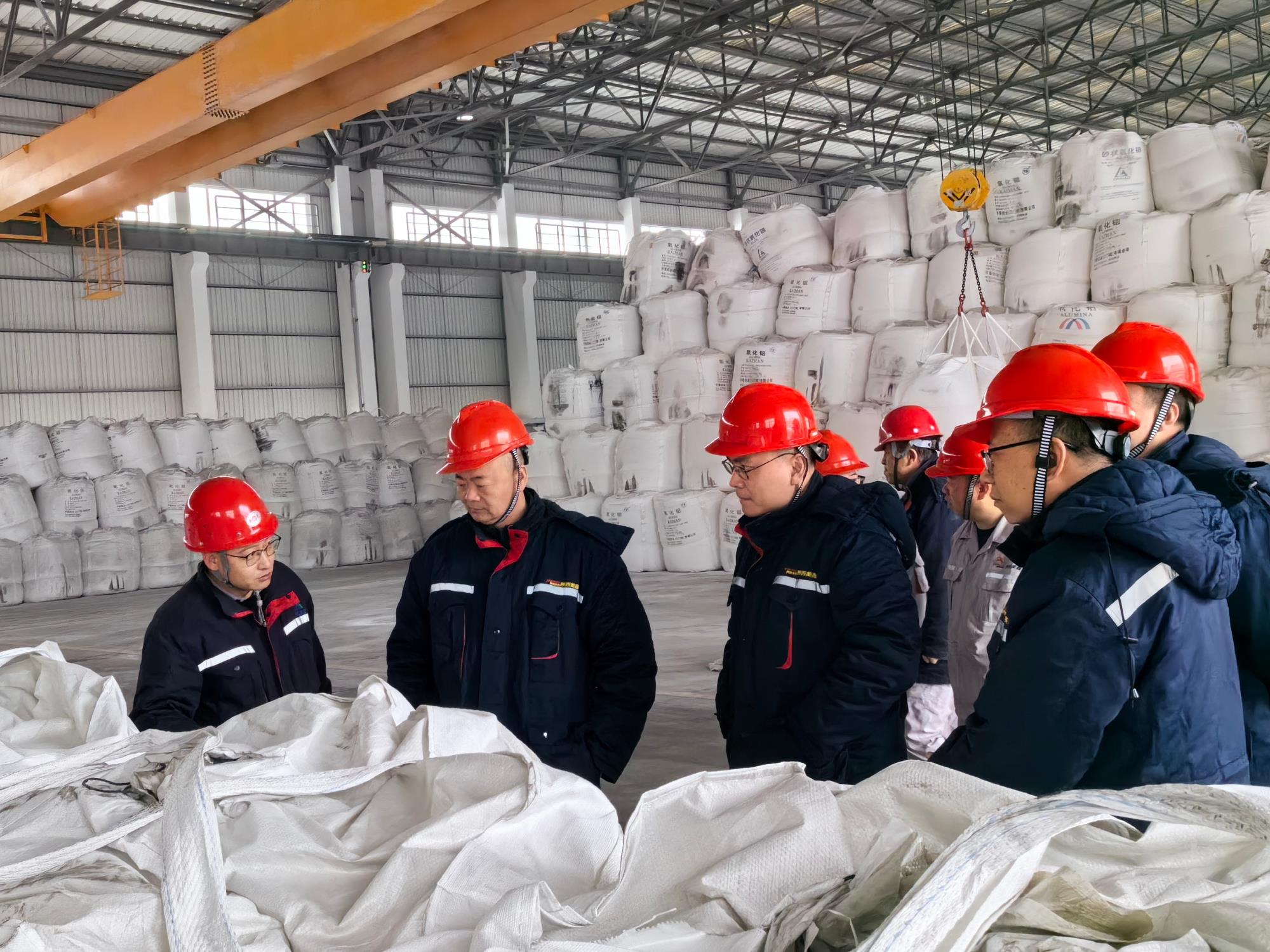 在鋁鎂合金分公司凈化供料車間氧化鋁倉(cāng)庫(kù),吳迪一行詳細(xì)詢問(wèn)了氧化鋁原料的儲(chǔ)備、安全管理等情況,仔細(xì)查看物料存放環(huán)境與設(shè)備運(yùn)行狀態(tài),強(qiáng)調(diào)必須做到安全庫(kù)存、優(yōu)質(zhì)保供、管理精細(xì)。
