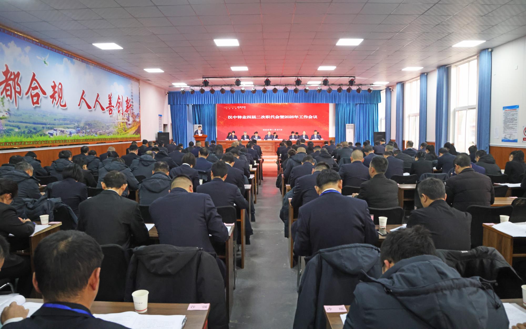 1月27日,漢中鋅業(yè)四屆二次職代會暨2026年工作會議召開。會議認真學習貫徹黨的二十大精神、黨的二十屆四中全會精神及中央經(jīng)濟工作會議精神,傳達陜西有色金屬集團三屆四次職代會暨2026年工作會議精神,全面復(fù)盤“十四五”、總結(jié)2025年工作,安排部署2026年重點任務(wù),動員廣大干部職工錨定轉(zhuǎn)型新坐標,攻堅“十五五”新征程,為漢中鋅業(yè)高質(zhì)量發(fā)展破局啟新而努力奮斗,為譜寫中國式現(xiàn)代化建設(shè)的陜西有色作出新的更大貢獻。