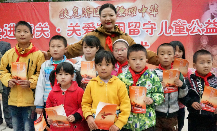 志愿者和留守兒童在一起