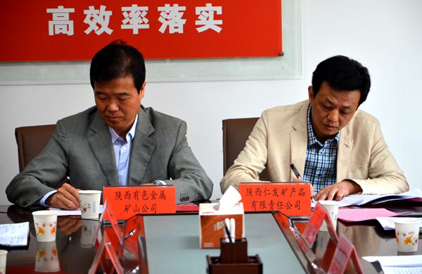 陜西有色金屬礦山公司總經(jīng)理秦寧昌、仁發(fā)公司總經(jīng)理王松華代表雙方公司在合作協(xié)議書上簽字,陜西有色金屬礦山公司黨委書記毛有平、鳳縣縣委書記鄭維國、人大主任王傳中、政協(xié)主席張斌、副縣長辛元平等出席簽約儀式。
