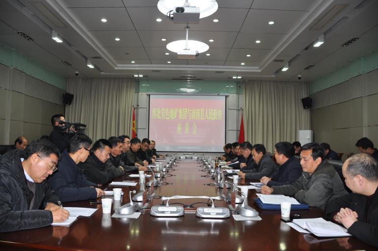 2019年1月10日下午,地礦集團(tuán)董事長(zhǎng)、黨委書(shū)記秦西社,總經(jīng)理高菊生,黨委副書(shū)記、工會(huì)主席李忠民等一行,前往集團(tuán)所屬陜西華源礦業(yè)有限責(zé)任公司所在地商洛市商南縣,與商南縣政府開(kāi)展座談交流,雙方就進(jìn)一步加強(qiáng)互利合作、促進(jìn)華源公司更好更快發(fā)展等進(jìn)行對(duì)接洽談。商南縣縣長(zhǎng)崔華鋒出席會(huì)議,縣委常委、副縣長(zhǎng)張賢慧主持會(huì)議。