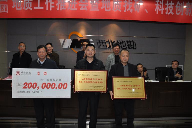 會議對地礦集團(tuán)、黃金集團(tuán)地質(zhì)找礦和科技創(chuàng)新成果進(jìn)行了表彰獎勵。授予713總隊、山陽秦鼎礦業(yè)有限公司“2018年度地質(zhì)找礦發(fā)現(xiàn)獎二等獎”,獎勵胡遠(yuǎn)平、胡興旺、王亞偉、王向陽、李劍斌等技術(shù)人員20萬元;授予“智能化自動注射進(jìn)樣多通道原子熒光光度計的研制與應(yīng)用技術(shù)研究”項目“科技創(chuàng)新成果獎”,獎勵3萬元;授予李日升博士“先進(jìn)科技工作者”榮譽稱號,獎勵5千元;授予地礦集團(tuán)地球物理院士專家工作站“先進(jìn)科技集體”榮譽稱號,獎勵1萬元;授予陜西省貴金屬材料創(chuàng)新中心“2018年度科技創(chuàng)新突出貢獻(xiàn)獎”,獎勵3萬元。地礦集團(tuán)、黃金集團(tuán)領(lǐng)導(dǎo)為獲獎代表頒發(fā)了證書和獎金。