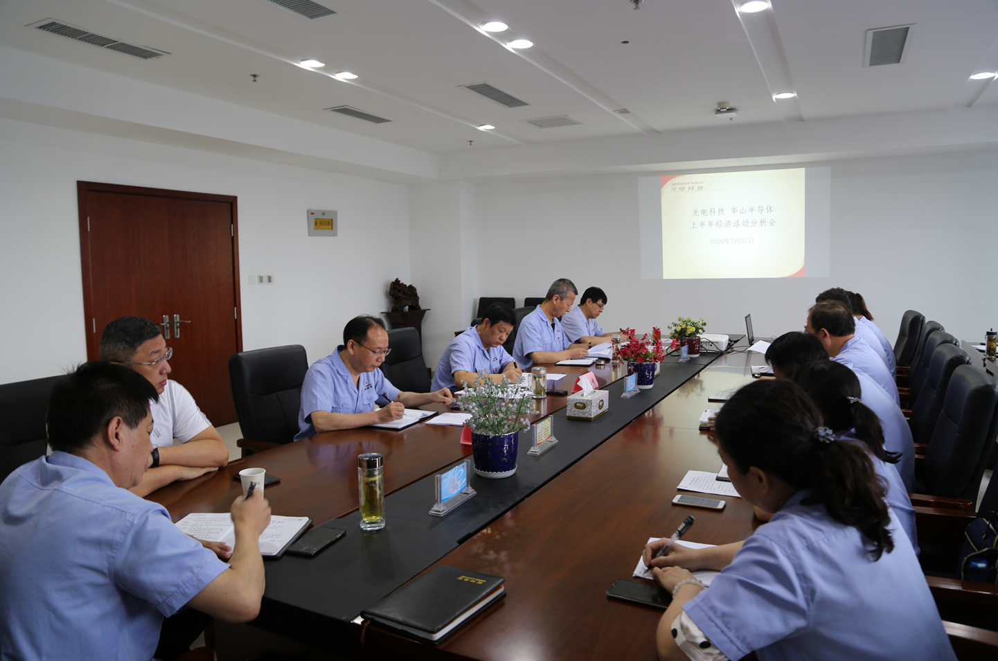為及時(shí)傳達(dá)貫徹集團(tuán)公司2020年年中工作會(huì)議精神,結(jié)合改革渡困及全面預(yù)算管理、兩金壓降要求,總結(jié)上半年經(jīng)濟(jì)工作取得成績和存在的不足,更好地部署推進(jìn)下半年生產(chǎn)經(jīng)營及重點(diǎn)工作,7月27日,光電科技、華山半導(dǎo)體召開上半年經(jīng)濟(jì)活動(dòng)分析會(huì),兩公司領(lǐng)導(dǎo)班子成員、各單位負(fù)責(zé)人、新能源公司、華半公司相關(guān)負(fù)責(zé)人參加會(huì)議??偨?jīng)理田建之主持會(huì)議。