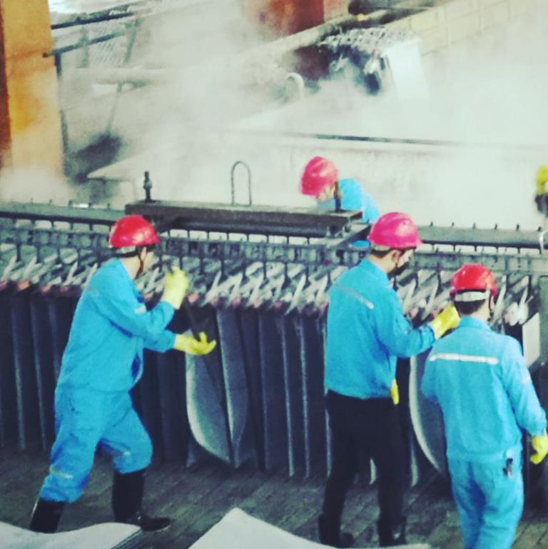 在熔鑄車間生產(chǎn)線:機聲隆隆,熱氣騰騰,剛出鍋的鋅錠隨著運輸履帶緩緩運行,銀光閃閃,也是一派繁忙的生產(chǎn)景象?!拔覀兪浅霎a(chǎn)品的地方,這個春節(jié)我們和其他車間一樣,面臨著防控疫情保生產(chǎn)的艱巨任務(wù),雖然很艱難,我們依然和大家一起克服困難,保質(zhì)保量把鋅皮變成產(chǎn)品,同志們確實非常辛苦,我們累并快樂著……”熔鑄車間黨支部書記兼車間主任、有色金屬工業(yè)協(xié)會勞模趙全章如是說。
