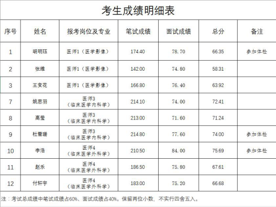 西北有色醫(yī)院2021年省屬事業(yè)單位公開招聘面試環(huán)節(jié)已經(jīng)結(jié)束,依據(jù)《事業(yè)單位人事管理條例》《陜西省事業(yè)單位公開招聘工作人員實施辦法》及2021年陜西省省屬事業(yè)單位公開招聘工作人員公告要求,考試總成績,按照與崗位招聘計劃1:1的比例從高分到低分確定參加體檢人員?,F(xiàn)將有關(guān)事項公告如下: