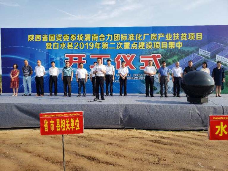 6月18日,渭南合力扶貧公司直投白水縣經(jīng)濟發(fā)展有限公司建設的白水縣雷公園區(qū)標準化廠房產(chǎn)業(yè)扶貧項目舉行開工儀式。省國資委監(jiān)事會主席、助力脫貧攻堅領導小組副組長王文斌,省扶貧辦社會扶貧辦主任趙勁松,渭南合力團成員單位主要領導,渭南市及白水縣有關領導出席開工儀式。