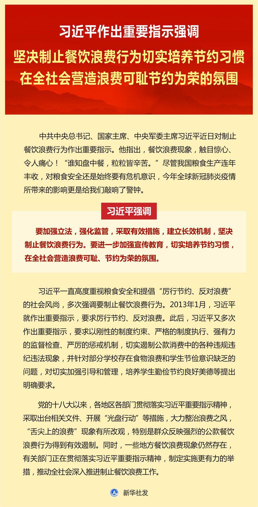 【學(xué)習(xí)資料】習(xí)近平作出重要指示強(qiáng)調(diào)堅(jiān)決制止餐飲浪費(fèi)行為切實(shí)培養(yǎng)節(jié)約習(xí)慣在全社會(huì)營(yíng)造浪費(fèi)可恥節(jié)約為榮的氛圍