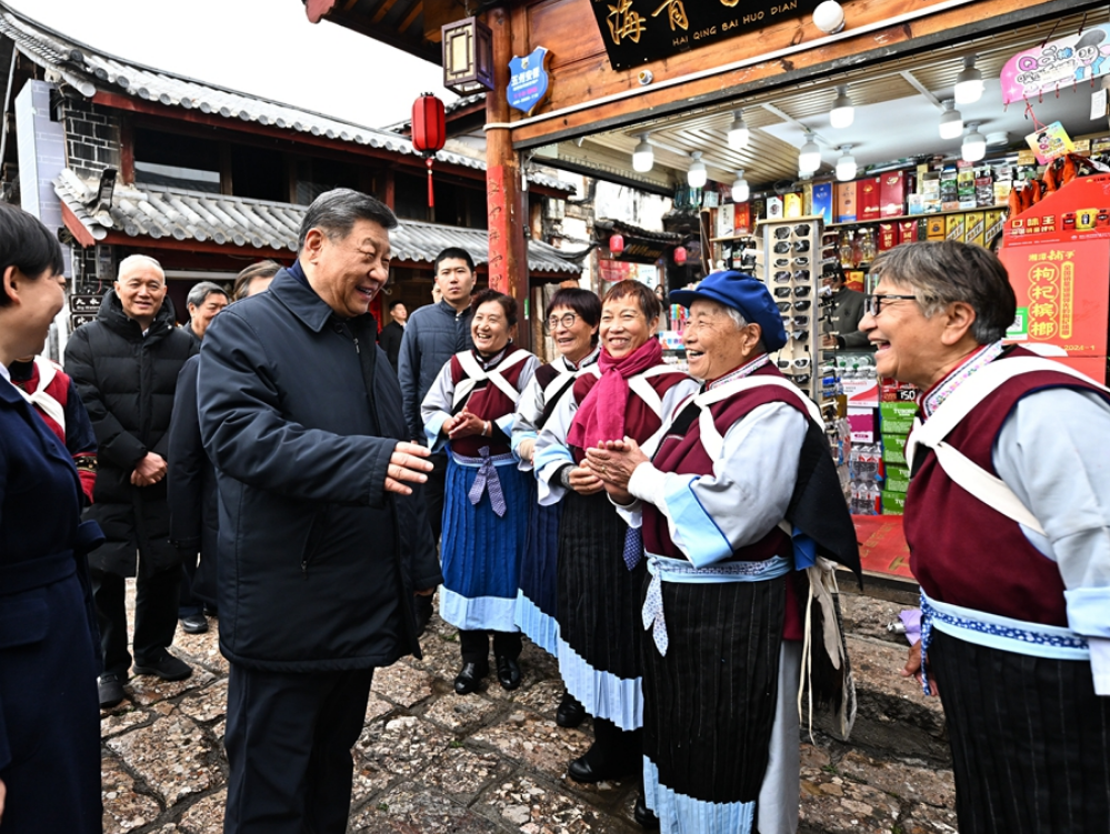 離開時,許多居民和游客圍攏過來為總書記送行。習(xí)近平激勵大家說,麗江有美麗風(fēng)光,有特色文化,有很高知名度,一定能走出一條持續(xù)健康的文旅發(fā)展之路。他祝愿麗江人民的生活如同納西族的“和”姓一樣,幸福安康、和和美美。