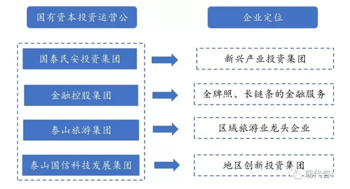 地市級(jí)層面,例如泰安市在原產(chǎn)業(yè)集團(tuán)的基礎(chǔ)上改建四家市屬集投資、運(yùn)營(yíng)于一體的國(guó)有資本投資運(yùn)營(yíng)公司——國(guó)泰民安投資集團(tuán)、金融控股集團(tuán)、泰山旅游集團(tuán)、泰山國(guó)信科技發(fā)展集團(tuán)。