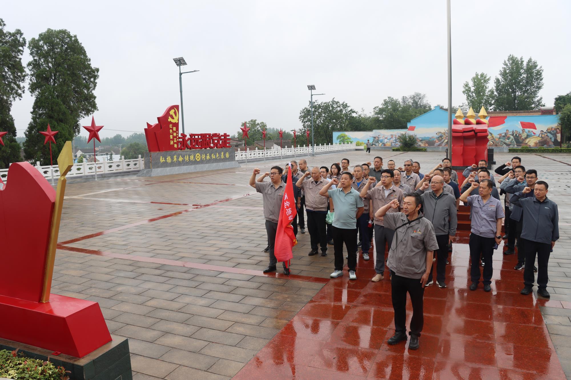 紅色研學(xué)悟初心,傳承革命精神血脈。在鳳翔區(qū)陳村鎮(zhèn)紫荊村“西府出擊”紅色教育基地,講解員帶領(lǐng)大家參觀了屈家山西北野戰(zhàn)軍司令部舊址。一件件斑駁的革命文物、一張張泛黃的歷史照片,生動再現(xiàn)了老一輩革命家“浴血奮戰(zhàn)求解放”的光輝歷程。黨員干部在沉浸式研學(xué)中,深刻感悟西北野戰(zhàn)軍“不怕犧牲、勇于擔(dān)當(dāng)”的革命精神,真切體會到革命道路的艱辛與革命成果的珍貴。活動尾聲,全體黨員在黨旗下莊嚴(yán)重溫入黨誓詞,以鏗鏘誓言重憶初心使命。