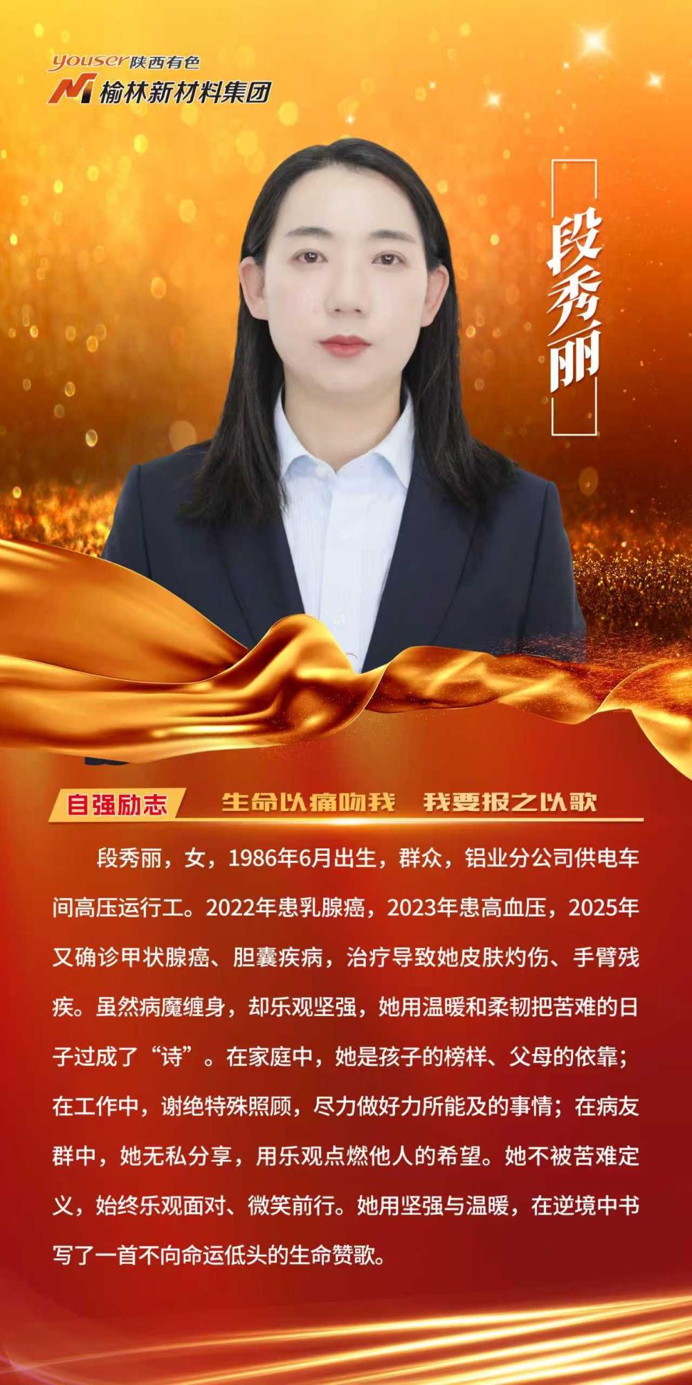發(fā)布儀式上,榆林新材料集團(tuán)合金分公司鑄造車間鑄造工曹孝孝被授予“助人為樂好人”;鋁業(yè)分公司凈化供料車間檢修電工吳俊龍被授予“敬業(yè)奉獻(xiàn)好人”;鋁業(yè)分公司電解三車間多功能天車工雍樂被授予“孝老愛親好人”;鋁業(yè)分公司供電車間高壓運(yùn)行工段秀麗被授予“自強(qiáng)勵志好人”。