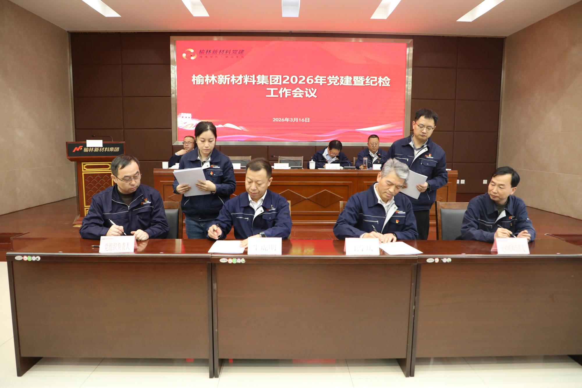 3月16日,榆林新材料集團召開2026年黨建暨紀(jì)檢工作會議,傳達(dá)學(xué)習(xí)陜西有色金屬集團2026年黨建暨紀(jì)檢監(jiān)察工作會議精神,總結(jié)2025年黨建及紀(jì)檢工作,安排部署2026年重點工作。公司黨委副書記、總經(jīng)理?;⒚鞒鱿瘯h并講話,黨委副書記、工會主席王新權(quán)作2026年黨建工作報告,黨委委員、紀(jì)委書記王學(xué)慶作2026年紀(jì)檢工作報告,黨委委員、副總經(jīng)理王志雄主持會議。