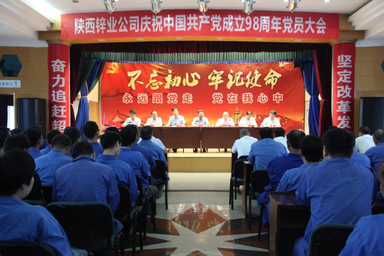 2019年6月24日,陜西鋅業(yè)公司慶祝建黨98周年黨員大會在辦公樓四樓多功能廳召開,公司黨委書記何學斌向全體黨員講了一節(jié)精彩的黨課,公司黨政班子、全體黨員及班組長以上管理人員共320余人參加會議,黨委副書記、總經(jīng)理崔旭東主持。