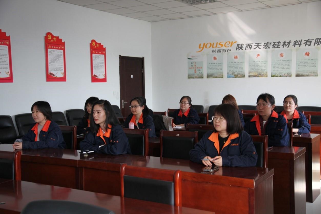 天宏硅業(yè)工會(huì)組織在崗女職工觀看專題知識(shí)講座和婦女維權(quán)法律知識(shí)競(jìng)賽活動(dòng),以此提高女職工勞動(dòng)安全健康意識(shí)和能力,保障女職工健康權(quán)益。