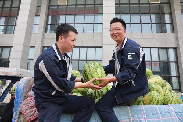 今年,公司工會在夏季送清涼活動中,投入6.3萬余元采購公司定點幫扶村坑鎮(zhèn)劉家坬村和村企共建幫扶村王家砭鎮(zhèn)豪則溝村農(nóng)副產(chǎn)品,7月19日下午,公司黨委副書記、總經(jīng)理蘇旭盛、工會主席胡磊向高溫下堅守崗位的一線職工送去西瓜和綠豆,并為他們送上公司的關(guān)心關(guān)懷,叮囑大家注意身體,增強安全生產(chǎn)意識,做好夏日防護,防止高溫中暑,同時也引導(dǎo)鼓勵廣大職工積極參與到消費扶貧中來,為鄉(xiāng)村振興貢獻力量。
