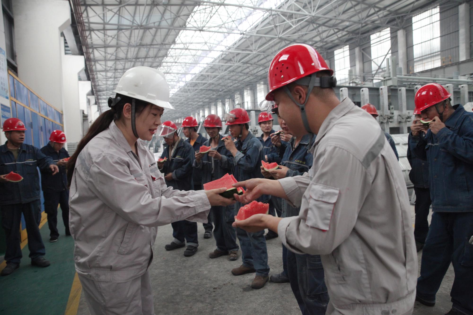 連日來驕陽似火,高溫天氣持續(xù)籠罩,陜西美鑫鋁鎂合金分公司生產一線一派繁忙景象,“奮戰(zhàn)二季度 實現雙過半”活動正如火如荼的進行著。陜西美鑫公司女工委積極響應公司黨政號召,6月14日下午,在鋁鎂合金分公司電解一、二車間開展“戰(zhàn)酷暑、保安全 與一線職工肩并肩”夏季送清涼活動,為奮戰(zhàn)在高溫一線的職工送去一絲清涼和一份關懷。