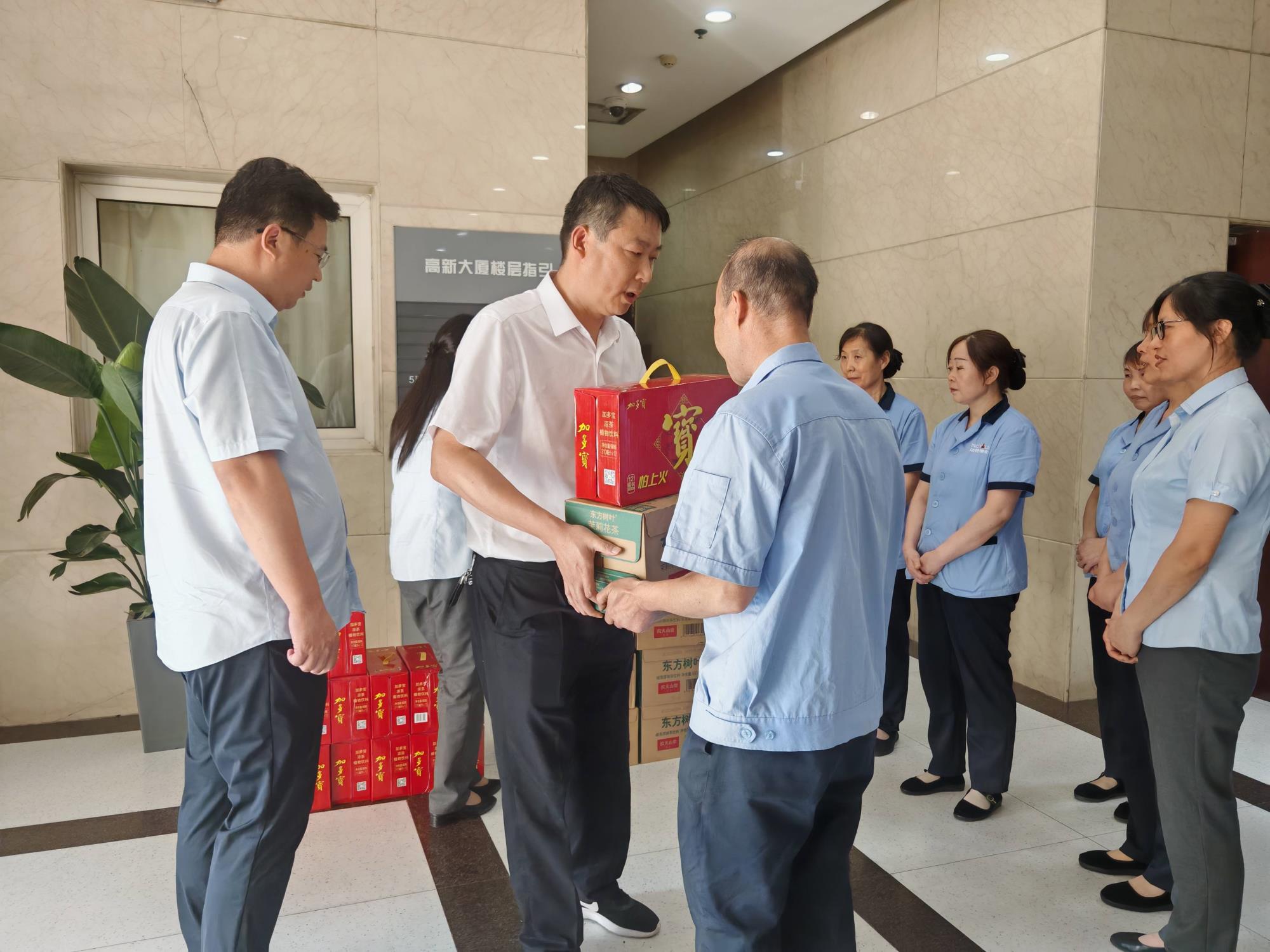 近期,隨著氣溫持續(xù)攀升,酷暑考驗(yàn)著每一位戶外工作者。面對高溫天氣,在集團(tuán)公司工會的支持下,西安實(shí)業(yè)工會委員會積極組織開展“炎炎夏日送清涼,絲絲關(guān)愛入心田”活動。本次活動由西安實(shí)業(yè)副總經(jīng)理、工會主席張保健帶領(lǐng)副主席秦昱,邁特物業(yè)公司總經(jīng)理譚志剛、工會副主席楊萍深入基層,為一線職工送關(guān)懷、送清涼。