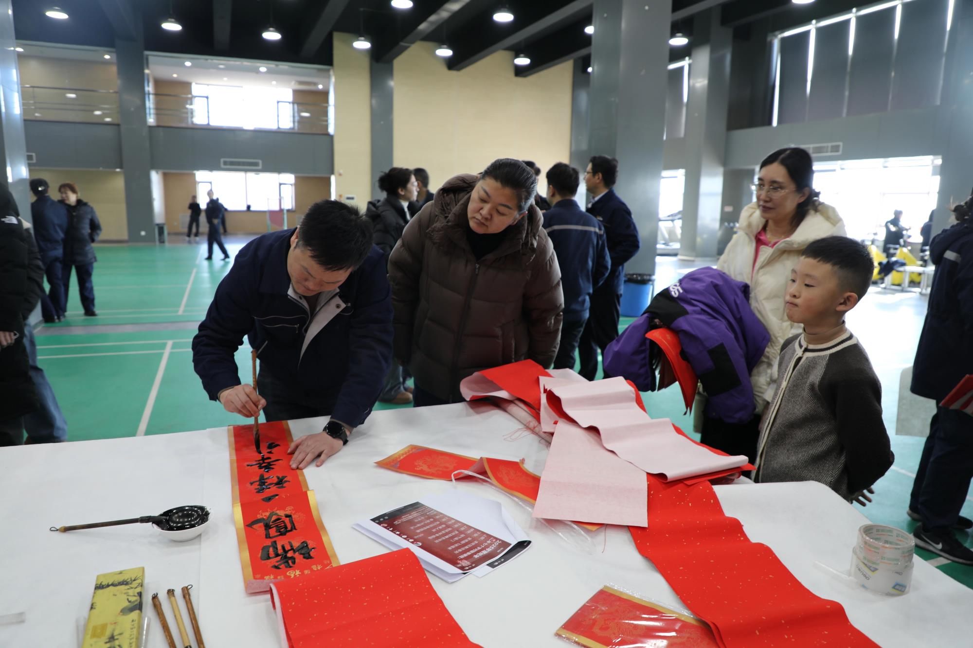 春節(jié)將至,年味漸濃,處處洋溢著喜慶的氛圍。為弘揚(yáng)中華優(yōu)秀傳統(tǒng)文化,營(yíng)造歡樂(lè)祥和的節(jié)日氛圍,豐富職工精神文化生活,把企業(yè)的關(guān)懷和溫暖送到職工手中,1月14日,榆林新材料集團(tuán)工會(huì)在公司文體中心三樓開(kāi)展了“迎新春 寫(xiě)春聯(lián) 送祝福”活動(dòng)。榆林新材料集團(tuán)黨委副書(shū)記、工會(huì)主席王新權(quán),公司工會(huì)委員、職工書(shū)畫(huà)協(xié)會(huì)成員為公司各單位職工和家屬現(xiàn)場(chǎng)送春聯(lián)、送福字、送祝福。