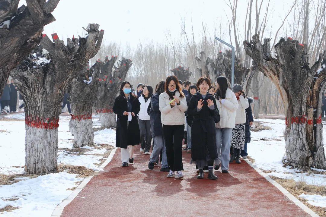 全程2公里的環(huán)湖步道化身為健康長廊,一夜春雪簌簌,道路兩旁積雪堆疊,滿是大自然饋贈(zèng)的浪漫與詩意。女職工們?nèi)宄扇航Y(jié)伴,既有你追我趕的活力比拼,也有駐足留影的歡聲笑語。沿途設(shè)立的打卡拍照點(diǎn)和兩個(gè)"能量補(bǔ)給站"貼心提供姜汁可樂、小零食,為奮進(jìn)的腳步注入滿滿元?dú)?。本次活?dòng)創(chuàng)新融入趣味挑戰(zhàn)元素,“不服來Battle”“奔跑小分隊(duì)”“圓舞曲”“步步為贏”等四大主題游戲互動(dòng)沿步道分布。女職工們?cè)谶\(yùn)動(dòng)間隙參與挑戰(zhàn),熱情高漲。