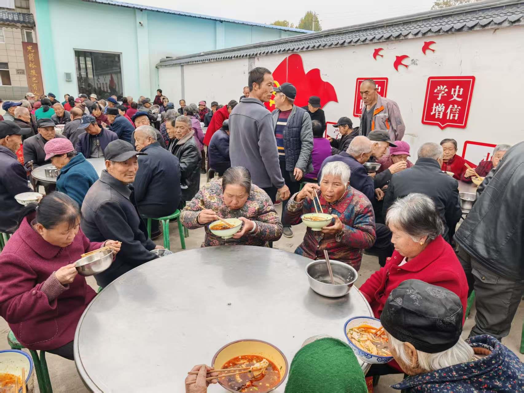 在裕華村,幫扶隊(duì)員與村“兩委”人員為老人們精心準(zhǔn)備了文藝表演、免費(fèi)理發(fā)、義診等暖心活動(dòng)。現(xiàn)場(chǎng)“大肉泡”美食飄香、戲曲歌曲交替演唱,鎮(zhèn)衛(wèi)生所的醫(yī)護(hù)人員還為老人們提供了免費(fèi)健康查體服務(wù)。