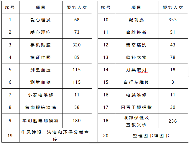 活動(dòng)現(xiàn)場(chǎng),開設(shè)了配鑰匙、拍證件照、愛心理發(fā)、縫補(bǔ)衣物等16個(gè)便民服務(wù)項(xiàng)目,開展了整理圖書、愛心捐贈(zèng)、眼部保健宣教義診、作風(fēng)法治和環(huán)保宣傳等4項(xiàng)公益活動(dòng)項(xiàng)目,以實(shí)際行動(dòng)傳承雷鋒精神,為廣大職工和身邊群眾提供“用得上”的暖心服務(wù)。此次活動(dòng),公司職工群眾參與熱情高漲,活動(dòng)現(xiàn)場(chǎng)氣氛活躍,3天的志愿服務(wù)活動(dòng)累計(jì)服務(wù)職工群眾1800余人次。