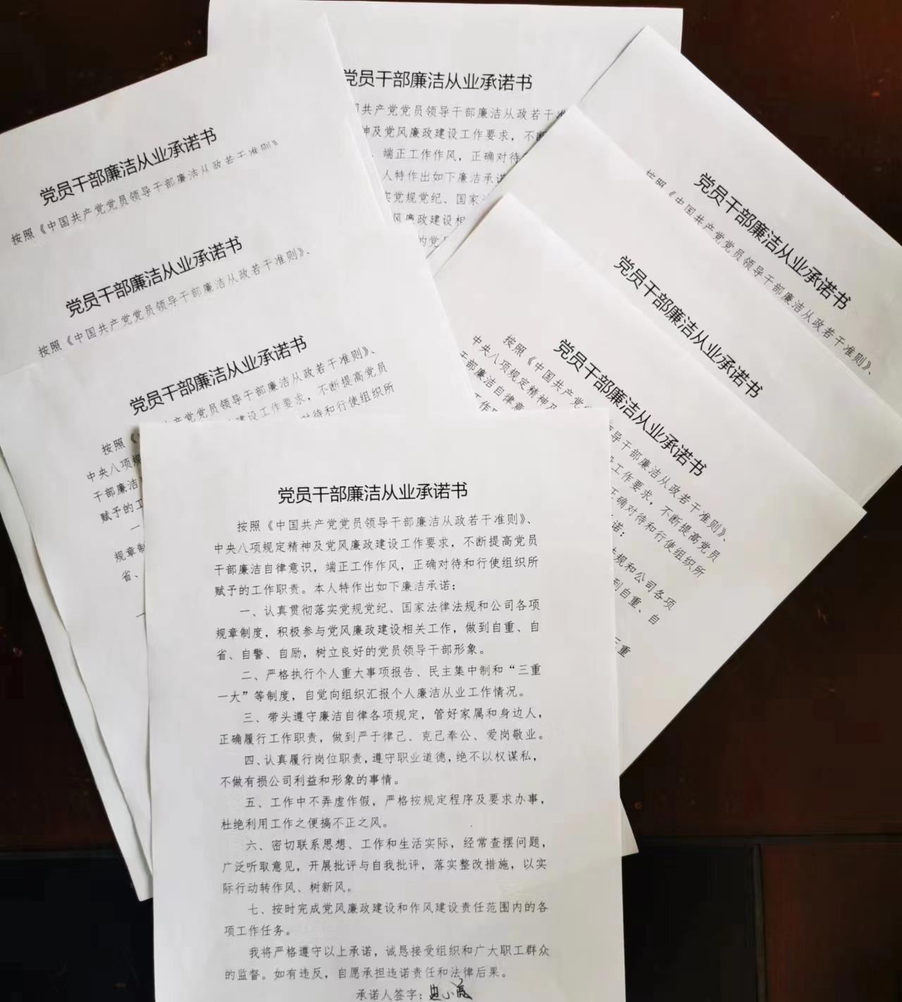 廉潔承諾求真務(wù)實。按照全面從嚴(yán)治黨要求結(jié)合國有企業(yè)領(lǐng)導(dǎo)人員廉潔從業(yè)若干規(guī)定》,黨支部圍繞中央八項規(guī)定精神、“七字”作風(fēng)建設(shè)、公司規(guī)章制度和崗位職業(yè)操守等內(nèi)容編制廉潔從業(yè)承諾書,從生活作風(fēng)和工作作風(fēng)兩個層面進(jìn)一步規(guī)范黨員干部的行為準(zhǔn)則。通過深入開展踐諾承諾活動,黨員干部的紀(jì)律意識、廉潔意識和責(zé)任意識顯著增強(qiáng)。