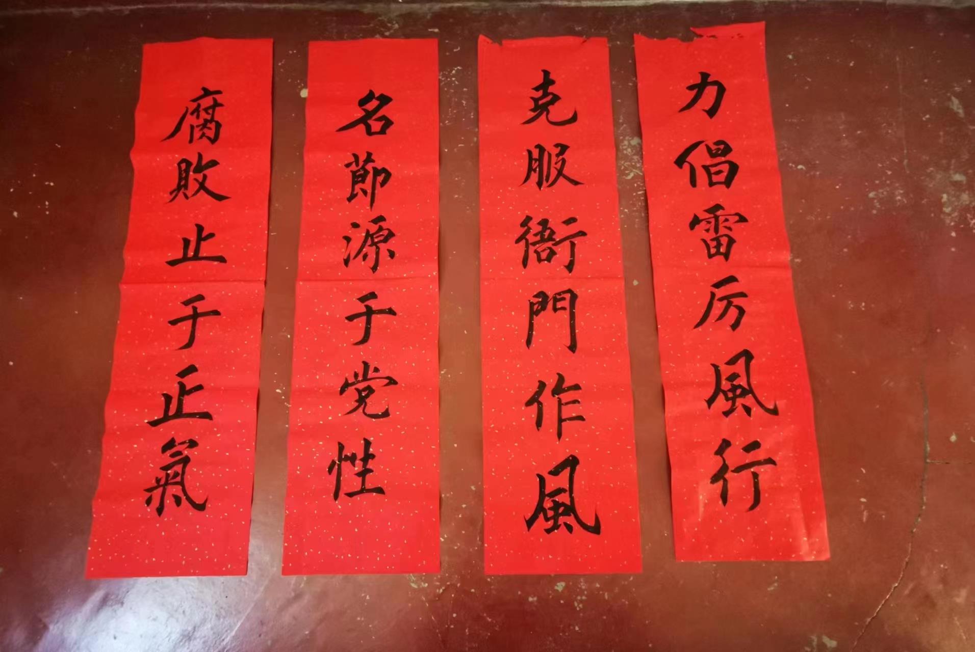 廉潔宣傳創(chuàng)新求變。紀(jì)檢干部聚焦監(jiān)督第一職責(zé),不斷創(chuàng)新監(jiān)督方式方法,嚴(yán)防“四風(fēng)”問題反彈。在關(guān)鍵節(jié)點開展廉潔提醒宣傳,對重點崗位采取談心談話機(jī)制,加大對點工作監(jiān)督落實力度,篩選從古至今反腐倡廉言警句20余條,邀請單位書法愛好者高宗同志撰寫廉潔宣傳標(biāo)語10余條,持續(xù)深化“三不”機(jī)制體推進(jìn),全面提升正風(fēng)肅紀(jì)反腐效能。