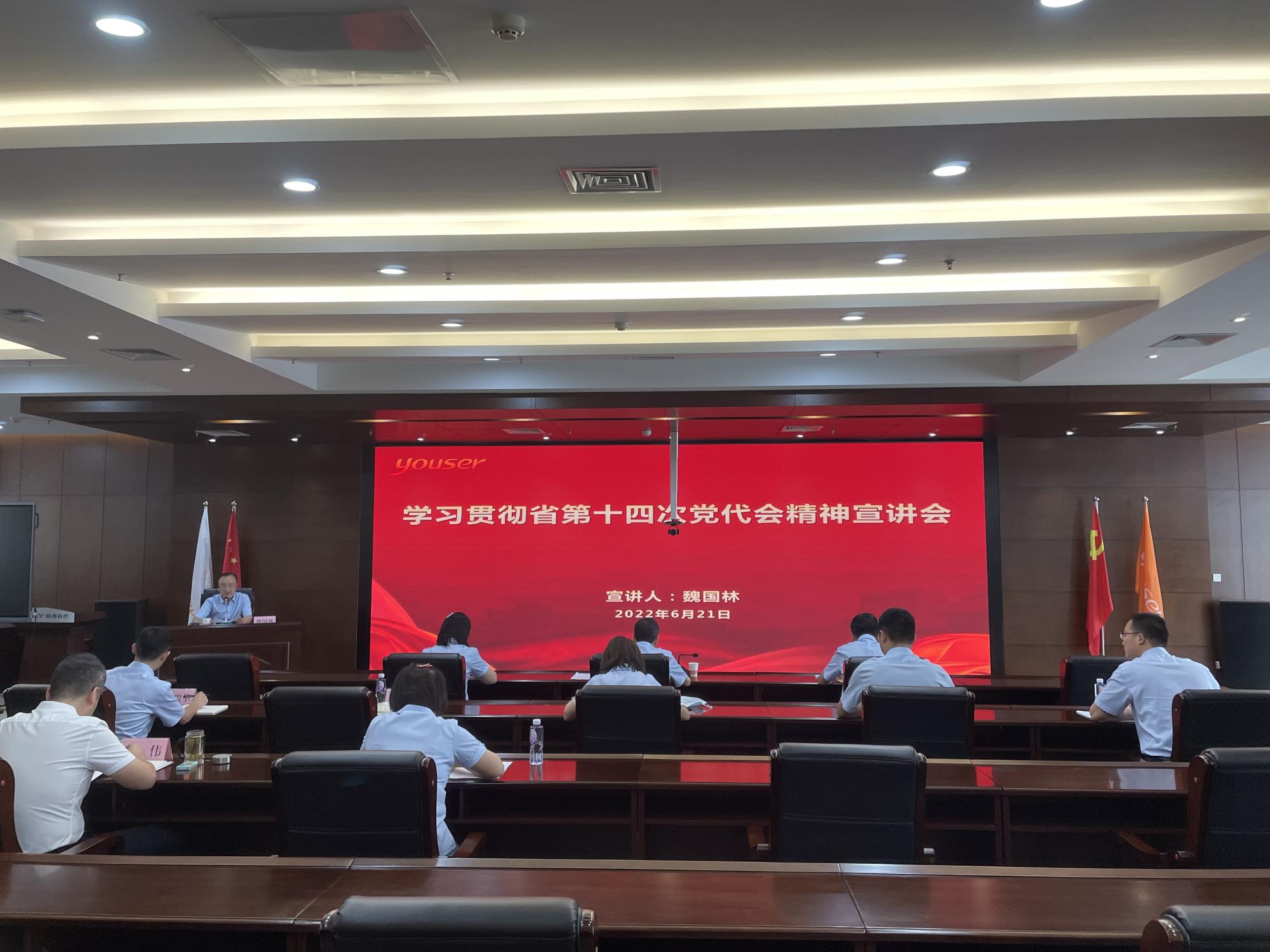 魏國林對照省第十四次黨代會精神宣講提綱,從大會的基本情況、深刻認識過去五年的工作成效、深刻認識今后五年的奮斗目標和總體要求、深刻認識今后五年的主要任務、認真學習宣傳貫徹省第十四次黨代會精神五個方面,對省第十四次黨代會精神進行了全面系統(tǒng)的解讀,并對學習宣傳貫徹省第十四次黨代會精神作了具體部署安排。