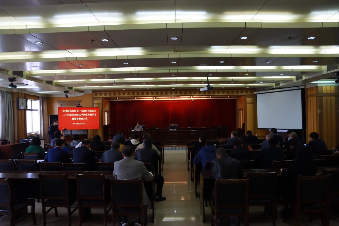 為深刻領(lǐng)悟黨的二十大報告中關(guān)于全面從嚴治黨重要論述的意義與要求,準(zhǔn)確把握全面從嚴治黨新形勢,推動公司全面從嚴治黨工作向縱深發(fā)展,10月26日下午,寶雞西北有色七一七總隊有限公司紀(jì)委召開學(xué)習(xí)黨的二十大精神推進全面從嚴治黨專題學(xué)習(xí)會。公司領(lǐng)導(dǎo)班子成員及機關(guān)第一、第二黨支部、建國飯店黨支部共計50余名黨員干部參加了本次會議。