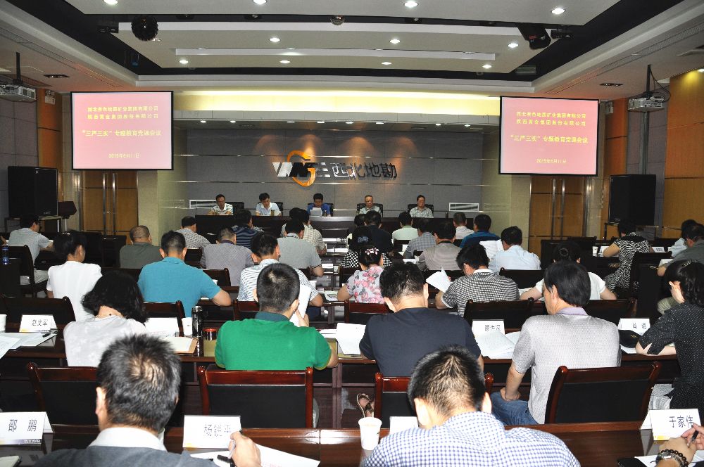 6月11日上午,西北有色地質(zhì)礦業(yè)集團(tuán)有限公司、陜西黃金集團(tuán)股份有限公司召開“三嚴(yán)三實(shí)”專題教育黨課會議,學(xué)習(xí)貫徹中央、省委、省國資委及陜西有色集團(tuán)公司黨委有關(guān)精神,對兩公司“三嚴(yán)三實(shí)”專題教育進(jìn)行動員和部署。兩公司黨委書記兼董事長孫峰為黨員干部講黨課,地礦集團(tuán)黨委副書記兼總經(jīng)理劉中華主持會議。兩公司領(lǐng)導(dǎo)班子成員,機(jī)關(guān)中層干部,專題教育活動辦成員,二級單位主要黨政負(fù)責(zé)人、黨委副書記、組織部長參加會議。 孫峰指出,開展“三嚴(yán)三實(shí)”專題教育是當(dāng)前全黨工作的重點(diǎn)任務(wù),習(xí)近平總書記關(guān)于“三嚴(yán)三實(shí)”的系列論述,為黨員干部劃定了做人、干事、從政、為官的基本底線。兩公司領(lǐng)導(dǎo)干部要充分認(rèn)識“三嚴(yán)三實(shí)”專題教育的重要意義,把思想和行動統(tǒng)一到黨中央的部署上來,以自覺的態(tài)度、有力的措施開展好專題教育活動,形成風(fēng)清氣正、謀事干事創(chuàng)業(yè)的良好局面。 孫峰對此次專題教育活動提出具體要求:要聯(lián)系兩公司實(shí)際,從嚴(yán)入手,認(rèn)真糾正“不嚴(yán)不實(shí)”的問題;要根據(jù)中央、省委、省國資委和陜西有色集團(tuán)精神,按照兩公司《實(shí)施方案》,認(rèn)真完成專題教育“規(guī)定動作”,高質(zhì)量講好黨課、組織好專題學(xué)習(xí)研討、召開好民主生活會、抓好整改落實(shí)、立規(guī)執(zhí)紀(jì);要準(zhǔn)確把握專題教育的總體要求,抓好主要環(huán)節(jié),把握教育主題,突出問題導(dǎo)向,堅持領(lǐng)導(dǎo)帶頭,講求活動實(shí)效;要加強(qiáng)組織領(lǐng)導(dǎo),精心謀劃,確保取得組織放心、群眾滿意的效果。 孫峰強(qiáng)調(diào),開展“三嚴(yán)三實(shí)”專題教育意義重大、影響深遠(yuǎn)。廣大黨員干部要以此為新起點(diǎn),把踐行“三嚴(yán)三實(shí)”作為履職做人的終身課題,常懷敬畏之心、常存戒尺之念,守好底線。努力建設(shè)一支忠誠、干凈、擔(dān)當(dāng)?shù)娜龂?yán)三實(shí)干部隊伍,推動兩公司健康持續(xù)發(fā)展。 劉中華就貫徹此次黨課會議精神強(qiáng)調(diào)兩點(diǎn):一是各單位要迅速傳達(dá)會議精神,扎扎實(shí)實(shí)抓好“三嚴(yán)三實(shí)”專題教育工作。二是要認(rèn)清新形勢,適應(yīng)新常態(tài),認(rèn)真抓好生產(chǎn)經(jīng)營工作。今年地勘行業(yè)經(jīng)濟(jì)形勢低迷,生產(chǎn)經(jīng)營遇到了前所未有的困難,現(xiàn)在已進(jìn)入6月份,一年馬上過半,時間緊、任務(wù)重。各級領(lǐng)導(dǎo)干部要迎難而上,勇于擔(dān)當(dāng),有所作為,要不畏困難,面向市場,創(chuàng)造性地開展工作,確保完成生產(chǎn)經(jīng)營任務(wù),將“三嚴(yán)三實(shí)”專題教育活動落到實(shí)處。